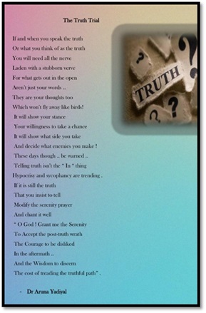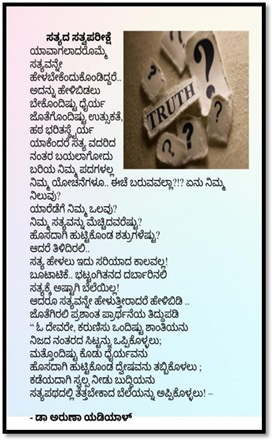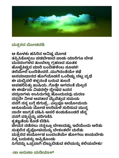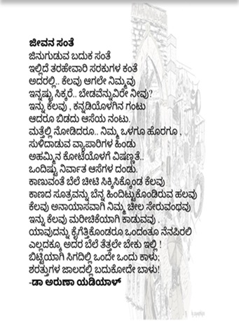 Dr. Aruna Yadiyal penned beautiful poems in English and Kannada. Please enjoy