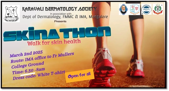 On March 2nd 2025, Indian Medical Association Mangaluru Branch in collaboration with Karavali Dermatology Society (KDS), Indian Association of Dermatologists Venereologists and Leprologists (IADVL) Karnataka, department of dermatology and Father Muller Medical College, successfully organized SKINATHON: A walk for skin health to raise awareness against skin quackery.