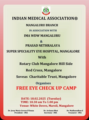 On 3rd November 2024, Free Health Check Up Camp was organised by MEDS in association with Indian Medical Association . Medical check up camp was conducted for Police Personnel, Tulu cine Actors and technicians and Press club Mangalore. The inauguration of the camp was conducted by Mr. Siddarth Goel, DCP Law & Order from Mr. Umesh DCP, CAR, Mr. M. A Upase, ACP, CAR, Mangalore Dakshina Kannada press club president, Mr. Srinivas Nayak and Tulu Cine Actor and Director, Vijay Kumar Kodialbail, Mangaluru. The Doctors participated in Free Health Check up camp are as follows: Dr. Sudeep K, President, MEDS, Dr. Shrikrishna Acharya, Secretary MEDS, Dr. Ganesh H K, Dr. Sowrabha Bhat, Dr. Akila Bhandarkar, Dr. Shrinath Shetty, Dr. Annayya Kulal and Dr. Avin B R Alva escorted the Guests on the dias. Dr. Avin B R Alva, welcomed the Guests on dias and proposed the vote thanks. The camp lasted from 9.00am to 12.45pm at IMA House, Mangaluru.