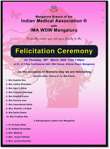 IMA Mangaluru Branch and IMA WDW celebrated the Womens Day celebration on March 6th 2025. There was an interactive session by Dr. Prathima Prabhu on “Recurrent Pregnancy Loss Exploring Causes and Management Options” it was followed by a interactive question answer session.