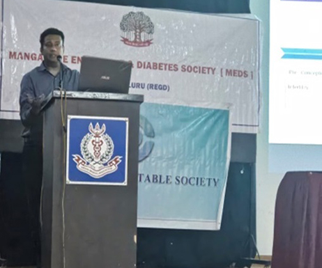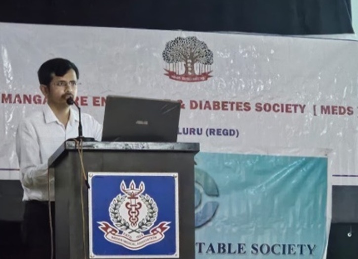 On 3rd November 2024, MEDS in association with Indian Medical Association Mangaluru conducted a CME Program on Diagnostic and Therapeutic procedures of Diabetes mellitus at Hotel Ocean Pearl Mangalore at 7.00pm. The CME was given by Dr. Sudeep K, President MEDS, Dr. Ganesh H K, Dr. Sowrabha Bhat, Dr. Akila Bhandarkar. The program sponsored by USV Pvt .Ltd, Mumbai. Dr. Avin B R Alva welcomed the gathering and Dr. Jessy Maria D Souza, Proposed vote thanks