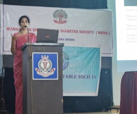 In view of World Thyroid Day Mangalore Endocrine and Diabetes Society in association with Indian Medical Association Mangaluru branch organised a one day CME “Mangalore Thyroid Updates CME 2025” on 25th May 2025 at IMA House, Attavar road, Mangalore. This is followed by a post graduate Endocrine quiz were around 25 teams from different parts of Karnataka participated in the event. The 1st prize bagged by KMC Manipal. The 2nd Prize was bagged by JJMC Belgaum and 3rd Prize was bagged by KMC Mangalore. The CME was attended by total of 150 Doctors of various parts of Mangalore. Dr. Arunachalam, Prof and senior consultant physician AJIMS was the Chief Guest for the CME. There were various talks by different endocrinologists from different parts of Karnataka followed by a interactive panel discussion on Thyroid Topics. CME was followed by a traditional lunch and final rounds of the quiz were held in the afternoon.