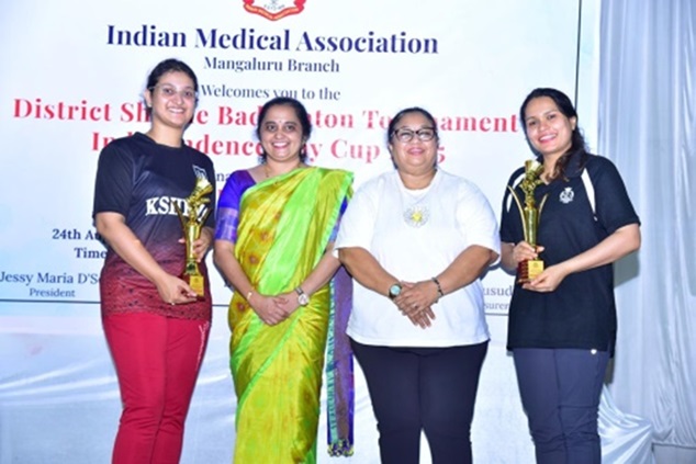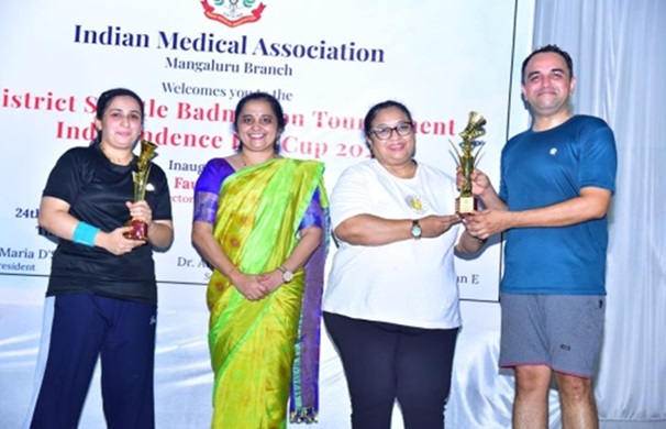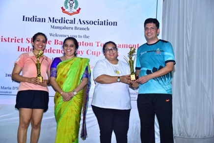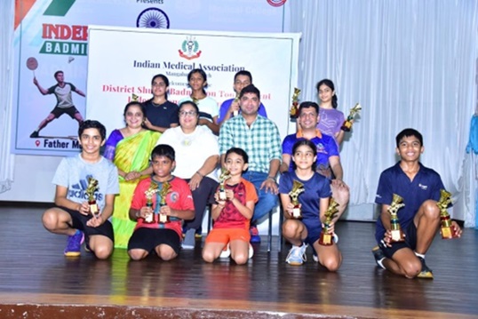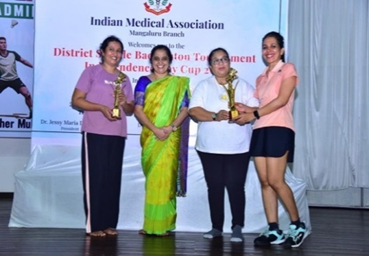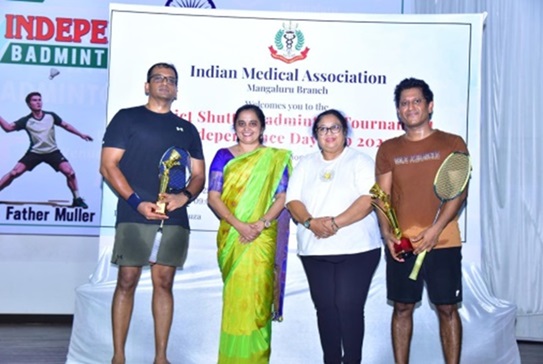 On 24th August 2025, IMA Mangaluru Branch organised Inter District Shuttle Badminton Tournament Independence Day Cup 2025 at Fr. Muller Indoor Stadium, Kankanady, Mangalore. Winners list--- Men's open ----- SINGLES Winner- Dr. Vihar Joshi. Runner up - Dr. Adarsh Hegde. DOUBLES winner - Dr. Nandakishore. B and Dr. Satishchandra. Runner up -Dr. Vihar Joshi and Dr. Poornachandra. Above 40 years Males SINGLES - Winner Dr. Sharath Runner up - Dr. Deepak DOUBLES - Winner -Dr. Nandakishore and Dr. Satischandra Runner up - Dr. Poornachandra and Dr. Pundalik Baliga. Womens Category Open SINGLES Winner -Dr. Vaishnavi shetty runner up - Dr. Divya Joshi DOUBLES Winner- Dr. Divya Joshi and Dr. Vaishnavi shetty Runner up - Dr. Shwetha Kamath and Dr. Daniya Hameed. Womens above 35 years Years SINGLES Winner- Dr. Vinitha K Runner up - Dr. Ramya. Mixed doubles Winner Dr. Nandakishore.B and Dr. Vinitha K Runner up - Dr. Shrivatsa and Sneha. Children categories- Under 18 Girls- SINGLES. winner - Twisha Bhat. runner up - Sanchi Bhat. DOUBLES - winner - Twisha Bhat and Sanchi Bhat. Runner up - Siddhiksha Rao and Soha L.S under 18 Boys SINGLES. winner - Prajwal Naik Runner up -Reyansh Bekal DOUBLES Winner - Prajwal Naik and Pranav Naik. Runner up - Prahas and Reyansh BekalChildren Less than 10 years. Singles Winner - Pranav Naik Runner - Shlok Kamath. Congratulations to all winners and participants.