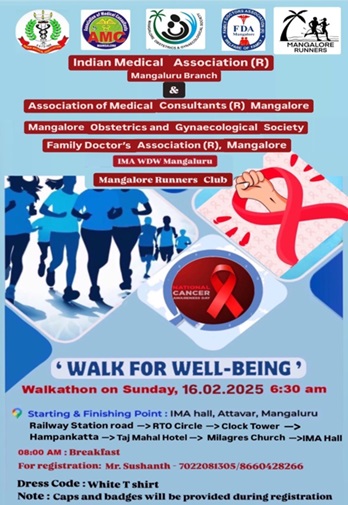 On 3rd November 2024 Mangalore Endocrinology and Diabetes Society in association with IMA Mangaluru Branch organised “Walkathon – Walk for Wellbeing to commemorate World Diabetes Day”. The Walkathon started from IMA House at 6.30 am and ended up at 8.30 am at IMA House, Mangaluru. Around 150 members participated in the Walkathon.