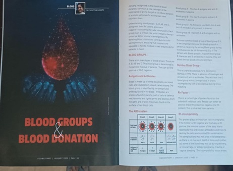 2. Dr. Shwetha Kamath, published an article on Blood Groups & Donations in Vishwavyapi Journal, January issue