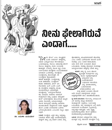 Dr. Aruna Yadiyal, Prof of psychiatry at Father Mullers Medical Colege published an article on Grief Management in children titled “Savina Bhaya” in Sudha Magazine. The article aimed at creating awareness in general public about the effects of death of near and dear ones on growing children and how to overcome such situation.