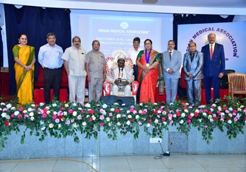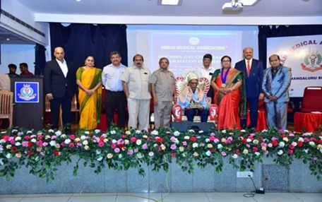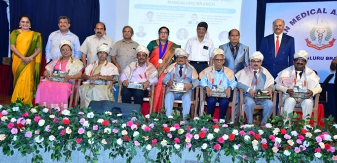 Dr. K R Kamath, Former President, Indian Medical Association (r) Mangaluru Branch, has been honored with the prestigious IMA KARNATAKA STATE BRANCH DOCTORS DAY AWARD by the IMA KSB Bangalore