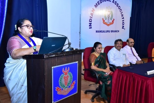 On same day there was a wonderful talk by Dr Haroon H consultant Physician KMC Mangalore on “Withdrawal of Life support in Terminally Ill Patients”. Dr Haroon H emphasized the importance of the will as well as changes made in the judiciary system in removal of life support in Terminally Ill Patients with the amendment in the Karnataka State Govt Rules. Dr. Jessy Maria D’Souza, President, IMA Mangaluru Branch welcomed the gathering and Dr. Archana Bhat, Secretary IMA Mangaluru Branch administered the Vote of thanks and thanked the beloved IMA members for their active participation in this CME programme.