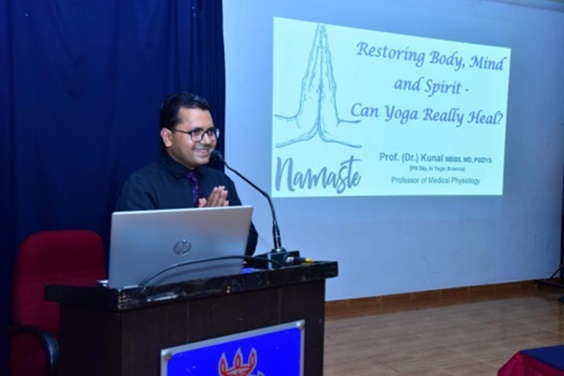 On 12th June 2025, In view of “World Yoga Day” Dr. Kunal, Physiologist and PG Diploma in Yogic Sciences from Srinivas Institute of Medical Sciences gave a talk on “Restoring Body, Mind and Spirit. It was an interesting session were the issue like Can Yoga Really Heal?” was discussed